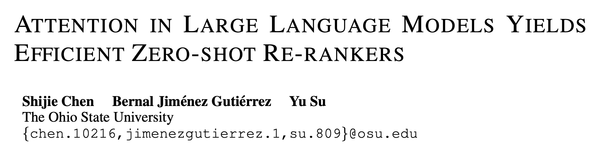 이번 논문은 ICLR 2025에 등재된 논문으로, LLM을 이용한 Zero-shot Re-ranker를 효율적으로 사용하기 위해 Attention Weight을 이용하는 방법을 제시한 논문입니다.
