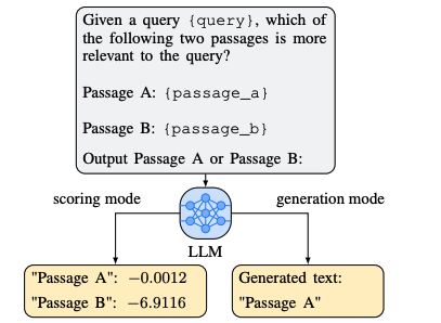 하지만, 기존 LLM 기반 re-ranking 방식들은 거의 LLM의 생성 능력에 많이 의존하는 편입니다.